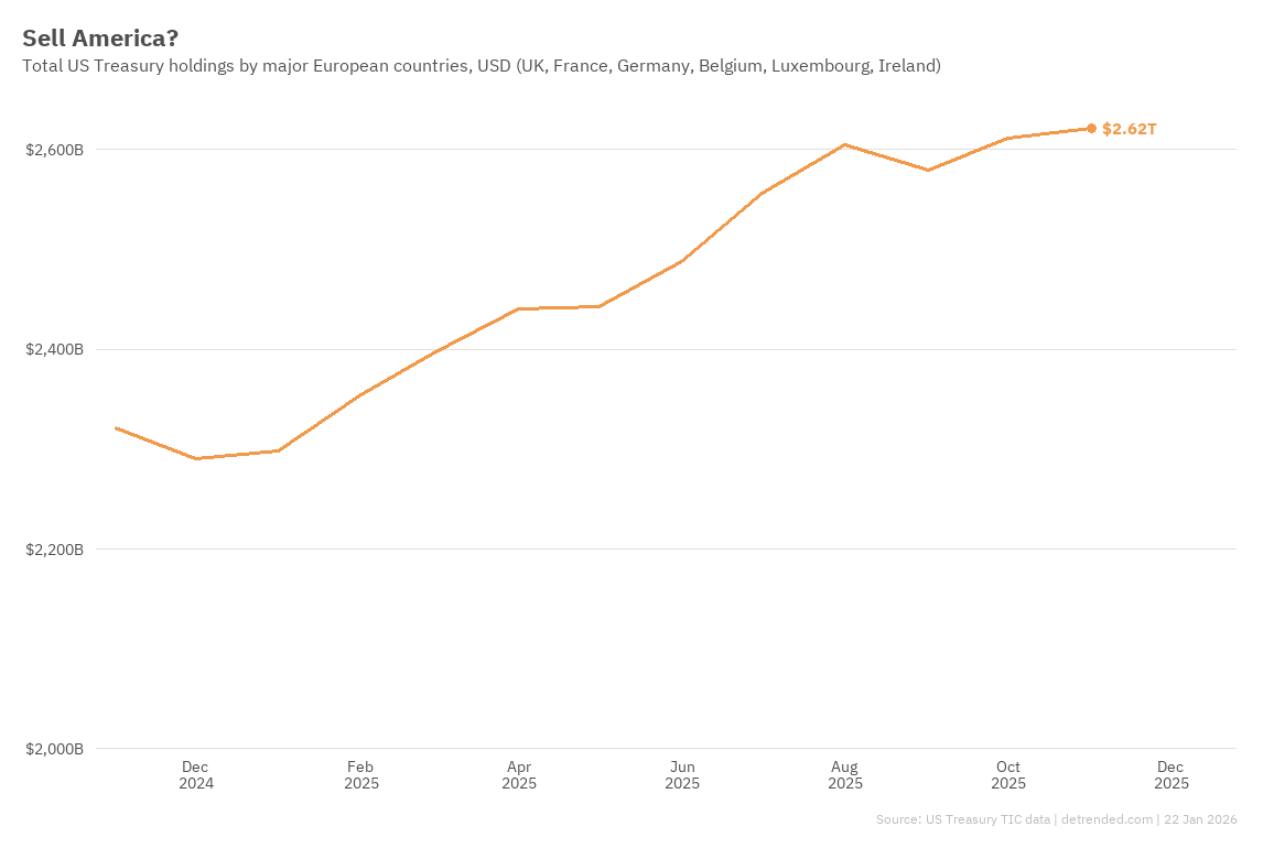 Take the Danish pension fund, AkademikerPension. It only owns around $100m in US Treasuries; a drop in the ocean in a nearly US$40-trillion market. It's also Danish, and at least until today US President Trump had been openly discussing invading a Danish territory in Greenland—a move that would be deeply unpopular with American voters (-72%), incidentally (probably why he ruled it out).